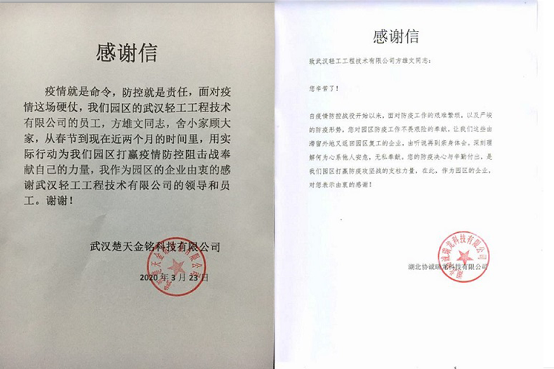 二、方雄文同志除了不忘公司使命,幫助公司盡快復(fù)工復(fù)產(chǎn)外,還不忘社會(huì)責(zé)任,積極為工業(yè)園區(qū)協(xié)誠(chéng)瑞榮公司、楚天金銘科技公司、北方測(cè)盟(武漢)公司等11家企業(yè)辦理復(fù)工復(fù)產(chǎn)手續(xù),并耐心細(xì)致的為工業(yè)園區(qū)各企業(yè)共200多人做好各項(xiàng)復(fù)工復(fù)產(chǎn)所需的政策解讀,做各種力所能及的事情,最后得到大家的高度認(rèn)可,工業(yè)園區(qū)內(nèi)相關(guān)企業(yè)對(duì)其進(jìn)行了表?yè)P(yáng)。