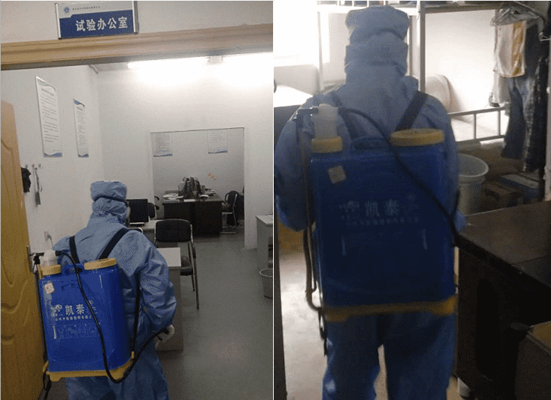 輕工工程公司孝感分場(chǎng)所試驗(yàn)室、辦公室、員工宿舍消毒,為復(fù)工復(fù)產(chǎn)做準(zhǔn)備